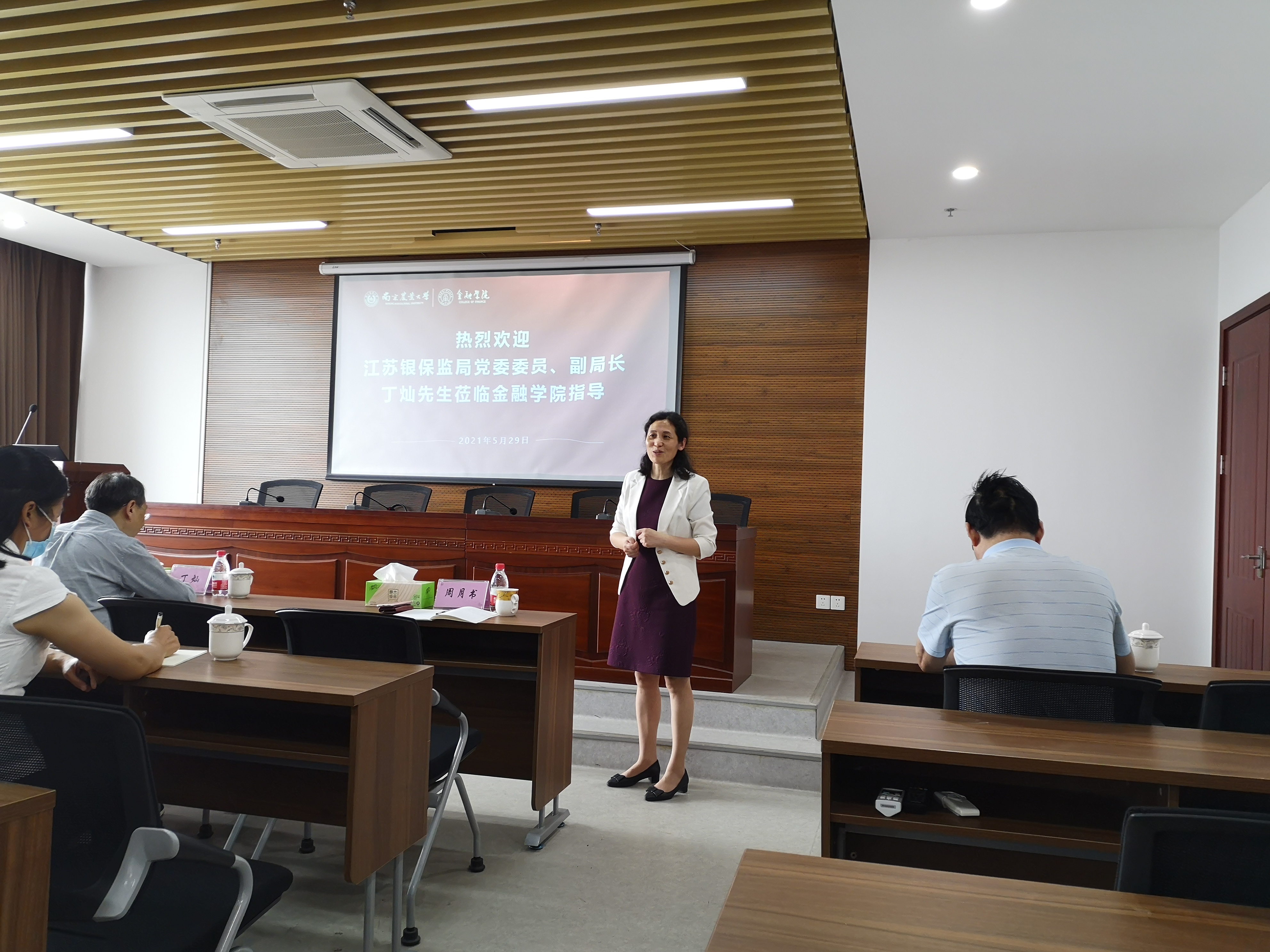 5月29日下午,在学院1306报告厅,江苏省银保监局党委委员、副局长丁灿开展《金融的本质与治理》的学术报告。报告由探花 院长周月书教授主持,刘荣茂教授、刘晓玲副教授等学院部分师生参加。