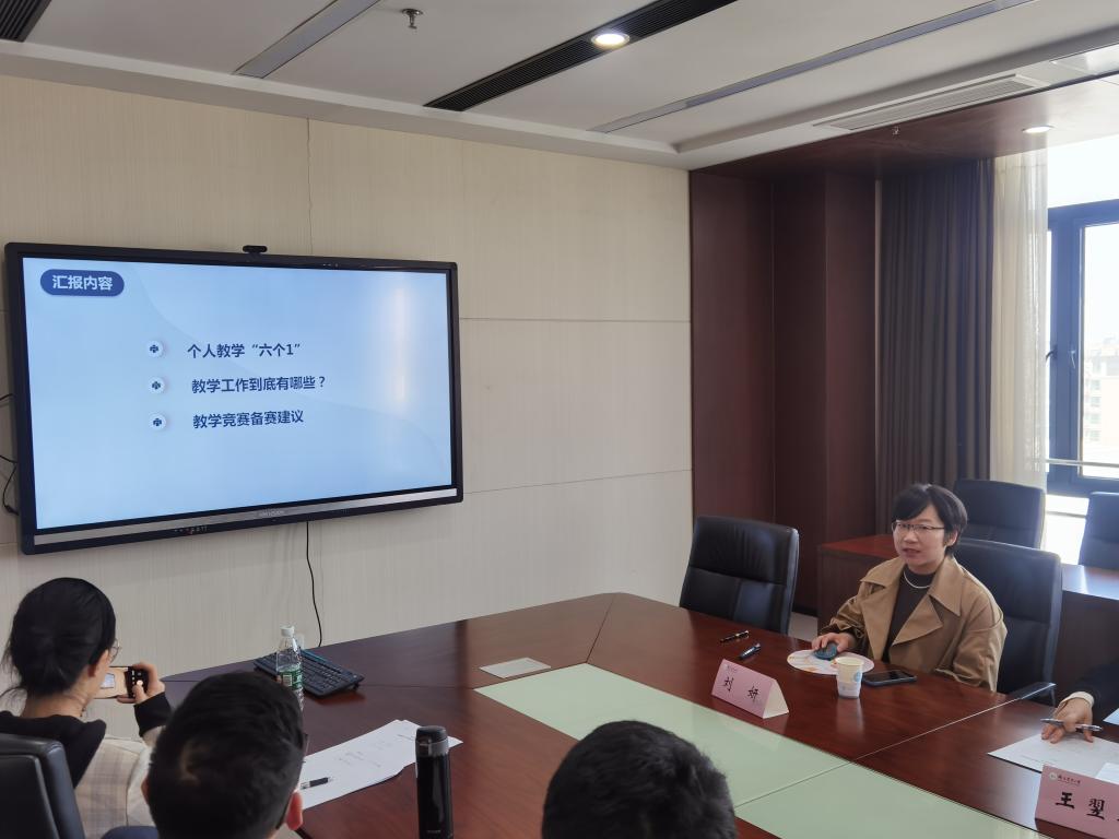 会议第二个环节由刘妍教授做教学分享。刘妍教授是江苏省青蓝工程优秀青年骨干教师,首批省级优秀基层教学组织负责人,曾多次获得全国和江苏省高校教师教学创新大赛、江苏省本科高校青年教师教学竞赛奖。刘妍教授在本次活动中主要围绕个人教学工作“六个1”,高校教学工作的内容和教学竞赛备赛建议三个话题开展研讨,并用“以生为本”、“融入团队”、“精准突破”、“扬长补短”十六个字与教师共勉,为青年教师教学工作规划指明方向。