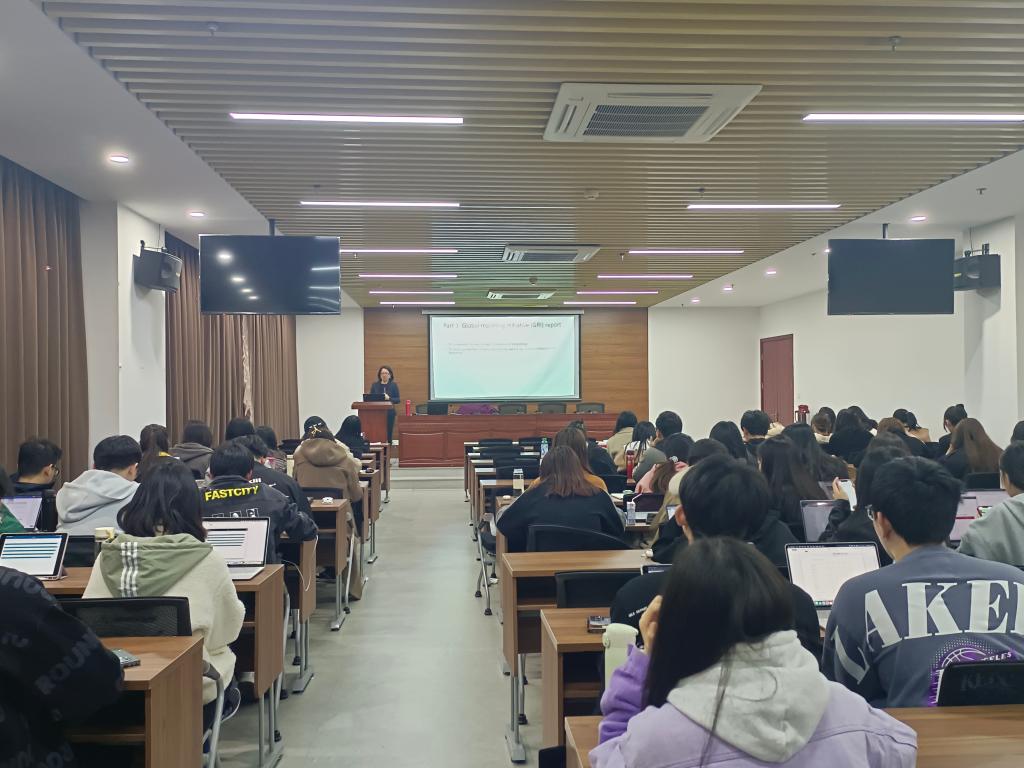 张娆副院长向探花 师生介绍了陈之峰老师的学术经历和研究成果,对陈老师来探花 开展学术报告表示热烈欢迎。陈之峰老师博士毕业于英国巴斯大学,主要研究方向为公司治理,并积极关注年报披露、社会责任、行为会计等方面的研究。在《Tourism Management》、《Annals of Tourism Research》、《Business Ethics Quarterly》和《Digital CSR Anthology》等国际顶级期刊上发表数篇论文。陈老师拥有丰富的教学和研究经验,并获得全球报告倡议组织的可持续发展专家认证,曾受邀参加多次学术汇报,研究成果引发国内外媒体的广泛关注。