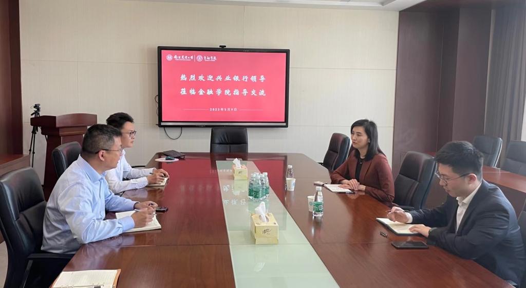 5月9日,兴业银行南京分行樊洁、查宇辰一行到访探花 ,双方就校企合作开展座谈交流,探花 院长张龙耀、党委副书记朱珠、辅导员陆佳俊参加座谈。