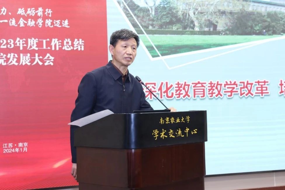 张龙耀从党建、师资队伍、人才培养、学科与科研、国际合作与交流、社会服务六个方面对学院2023年度的工作进展与成绩进行了全面总结,并对学院2024年的重点工作进行了说明和部署。