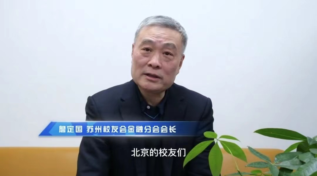 欣闻北京校友会金融分会成立,苏州校友会金融分会会长詹定国在视频贺词中指出,分会的成立有助于校友们充分应用专业价值,更好地服务于校友与母校,服务社会进步与经济发展。希望北京、苏州两城金融界校友加强交流,引领校友携手并进,为金融强国建设做出贡献。