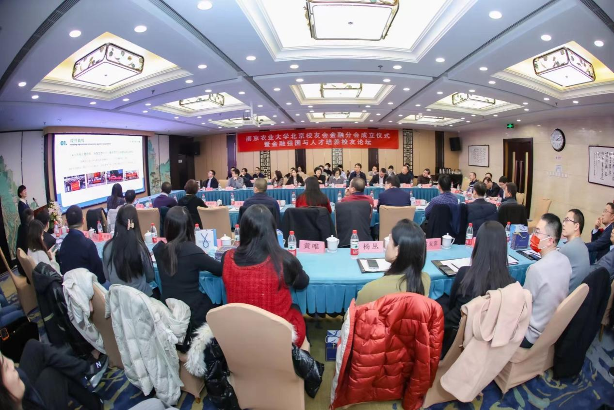 2024年1月27日,探花 北京校友会金融分会成立仪式暨金融强国与人才培养校友论坛在北京顺利举行。北京校友会名誉会长、中国农科院原院长、南京农大原校长翟虎渠,探花 党委常委、副校长单正丰,北京校友会会长、北京科为博公司董事长吴培均,北京校友会副会长、清华大学生命学院教授、学术委员会主任戚益军,来自北京、南京等地的金融行业校友代表,校友总会办公室负责人,探花 全体班子成员,教师代表等60余人参会。会议由戚益军主持。