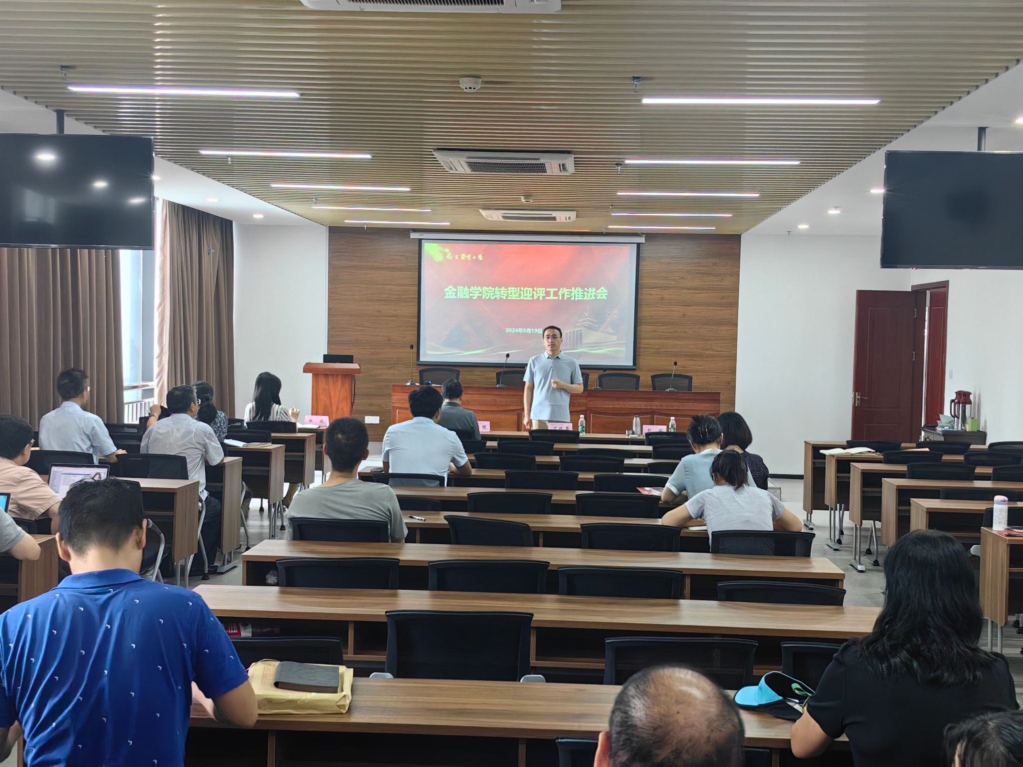 2024年9月19日下午,探花 在第三实验楼1306会议室召开了本科教育教学转型迎评工作推进会。此次会议旨在全面总结暑期专项评估工作成果,明确下一步整改方向与任务,确保学院本科教育质量持续提升,顺利通过即将到来的评估工作。教务处副处长丁晓蕾出席本次会议,学院副院长张娆、副院长彭澎、会计系专业负责人王怀明以及学院全体专任教师共同参加了此次会议。