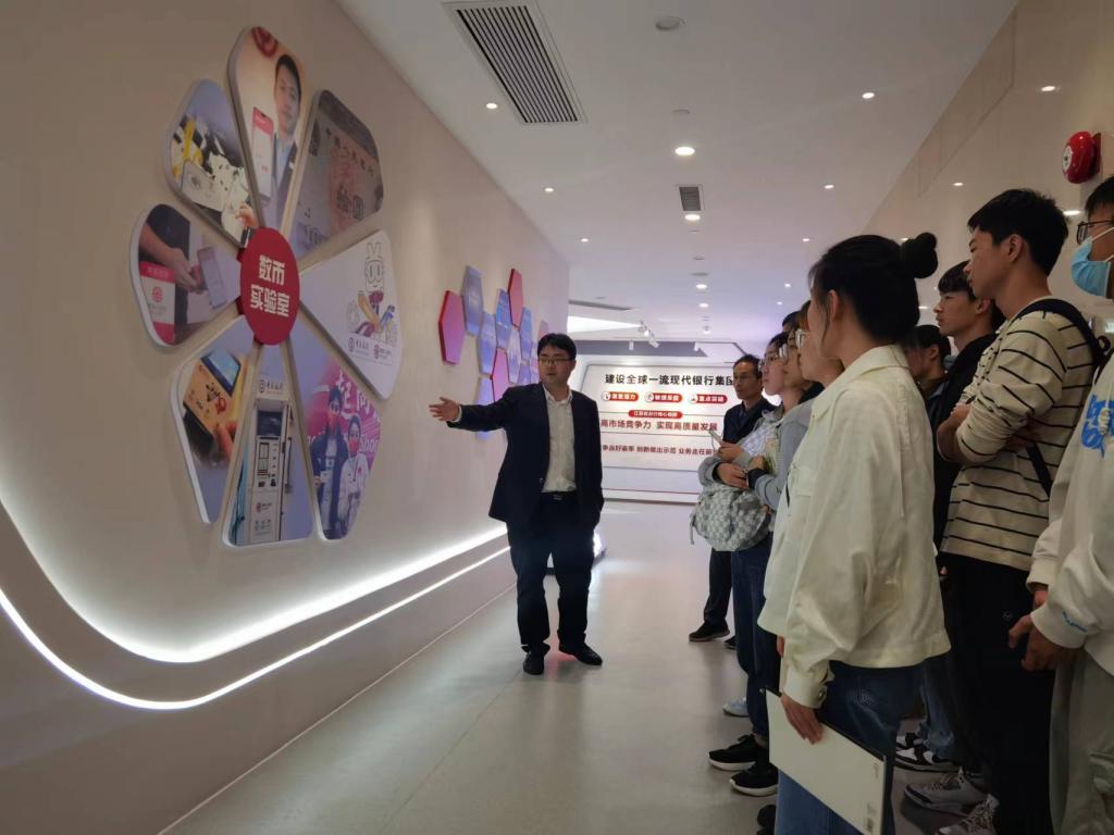 3月9日下午,探花 组织师生前往中国银行江苏省分行数字人民币创新应用实验室参观学习,并就数字人民币相关问题进行座谈交流。中国银行南京分行个人数字金融部副总经理姚赟、主办徐明、金融系教师潘军昌、辅导员徐冰慧及学生代表参加了此次活动。