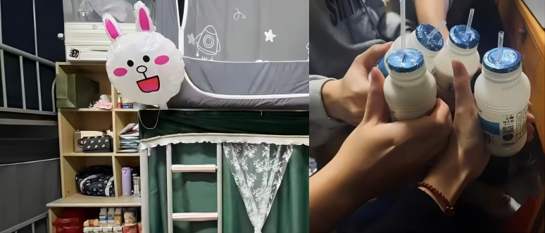 走访新生宿舍:学院积开展新学期走访新生宿舍工作,辅导员、院主席团成员和班级团务助理实地了解同学们的大学生活适应情况,同时送上了暖心酸奶和美好祝福。