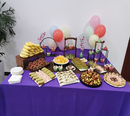 中午一点,学院工会已经联系元祖公司为大家准备了精致的小甜品,多位老师在繁忙的工作之余前来放松、交流。