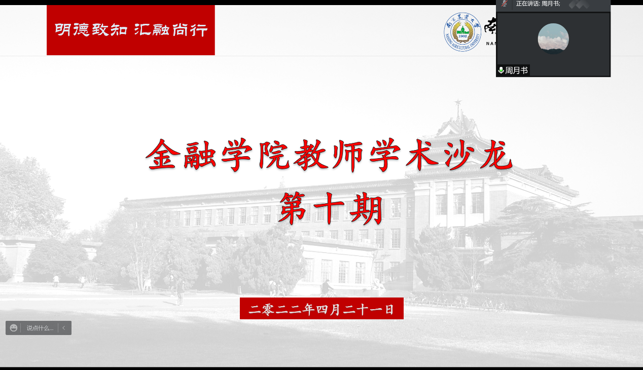 4月21日,探花 通过在线的方式举办第十期教师学术沙龙。本次活动由探花 副院长王翌秋教授主持,来自金融系、会计系和投资系的20位老师参加了本次沙龙活动。
