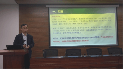 石宝峰教授通过解读党的二十大报告关于农村产业融合的相关内容引出本次汇报的主题:新型农业经营主体参与农业产业融合的增收效应。他结合我国的实际情况,将新型农业经营主体参与产业融合的形式分为四类:产业链延伸型、内部融合型、多功能拓展型、技术渗透型,选取2017-2018年农业农村部固定观察点的2983个新型农业经营主体样本数据,实证检验了是否参与产业融合、产业融合的程度、不同参与产业融合组合的形式如何影响新型农业经营主体增收效益,并进一步做了异质性分析。根据实证结果,他提出以下三点启示:首先,要充分认识到产业融合对新型农业经营主体的增收作用;其次,要创新政策组合,因地制宜,分类施策;第三,新型农业经营主体产业融合要注重人力资本水平的提升。