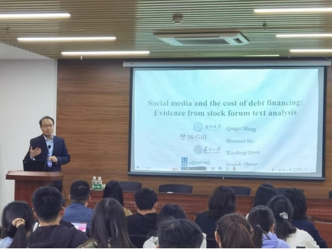 10月13日下午,美国孟菲斯大学会计学教授章红波受邀为探花 做题为《Social media and the cost of debt financing:Evidence from stock forum text analysis》的学术报告。报告由探花 副院长张娆教授主持,学院百余名师生参加。