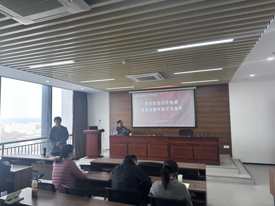 汤晓建老师对石劲教授受邀开展学术报告表示热烈欢迎。石劲现任中南财经政法大学金融学教授,研究领域主要包括中国资本市场、金融科技、公司金融、公司治理和债券评级等,已在American Economic Review,Journal of Political Economy,Administrative Science Quarterly,Strategic Management Journal,Management Science,《经济研究》等国内外学术期刊发表论文60余篇。