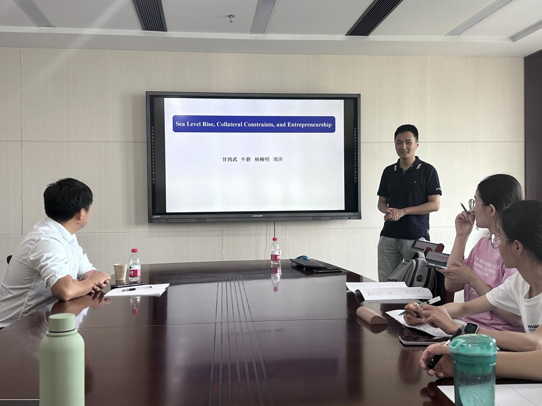 5月22日上午,武汉大学经济与管理学院副教授周洋受邀为探花 做题为《海平面上升、抵押品限制和创业》的学术报告。报告由探花 吴雨教授主持,学院30余名师生参加。