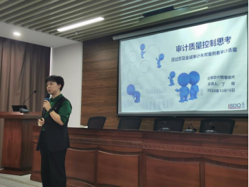 10月16日下午,立信会计师事务所江苏分所审计风险管理部负责人、授薪合伙人丁榕女士受邀为探花 做题为《审计质量控制思考》的报告。报告由探花 副院长张娆教授主持,学院百余名师生参加。