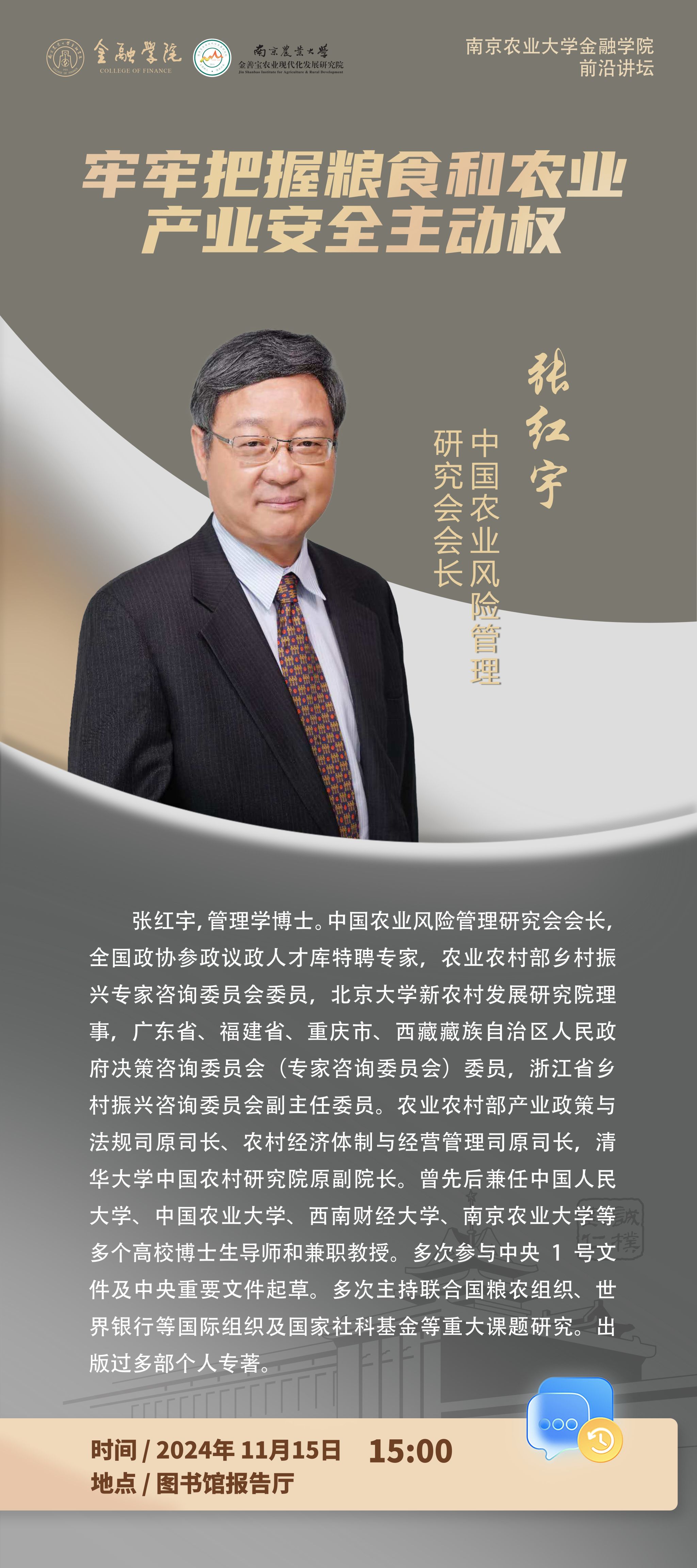 讲座预告(11.15)丨牢牢把握粮食和农业产业安全主动权