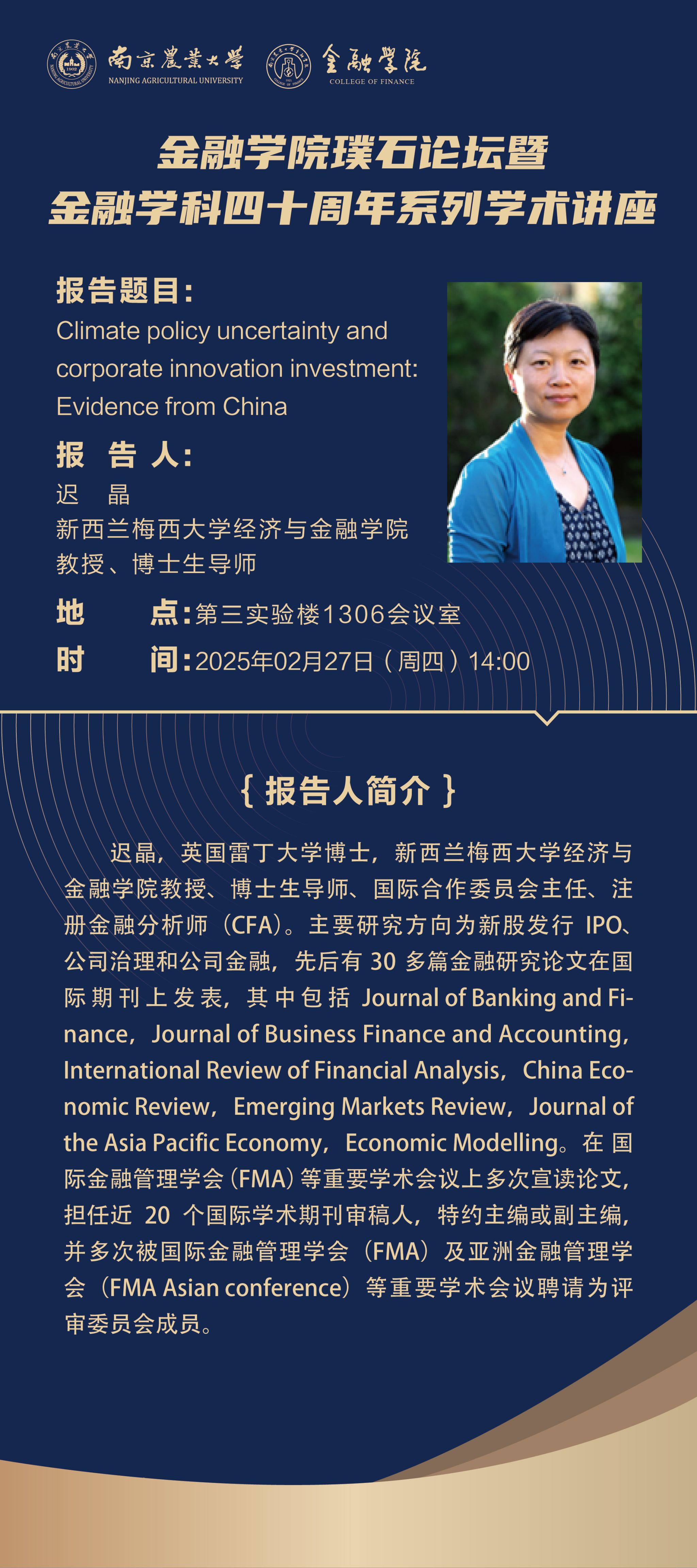 讲座预告(02.27)丨Climate policy uncertainty and corporate innovation investment: Evidence from China