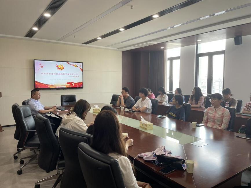 张龙耀作《以高质量金融发展推动中国式现代化》专题党课,从党的二十大报告中的金融工作、全国金融工作会议及中央经济工作会议中的金融工作、高质量金融发展助力乡村振兴等三个方面出发,强调金融发展在助力推进中国式现代化中的重要支撑地位,阐释了中国式现代化与高质量发展的科学内涵。鼓励各位学生党员以强农兴农为己任,做知农爱农的时代青年,积极聚力乡村振兴,争取运用金融专业知识,为国家的“三农”事业贡献青春力量。