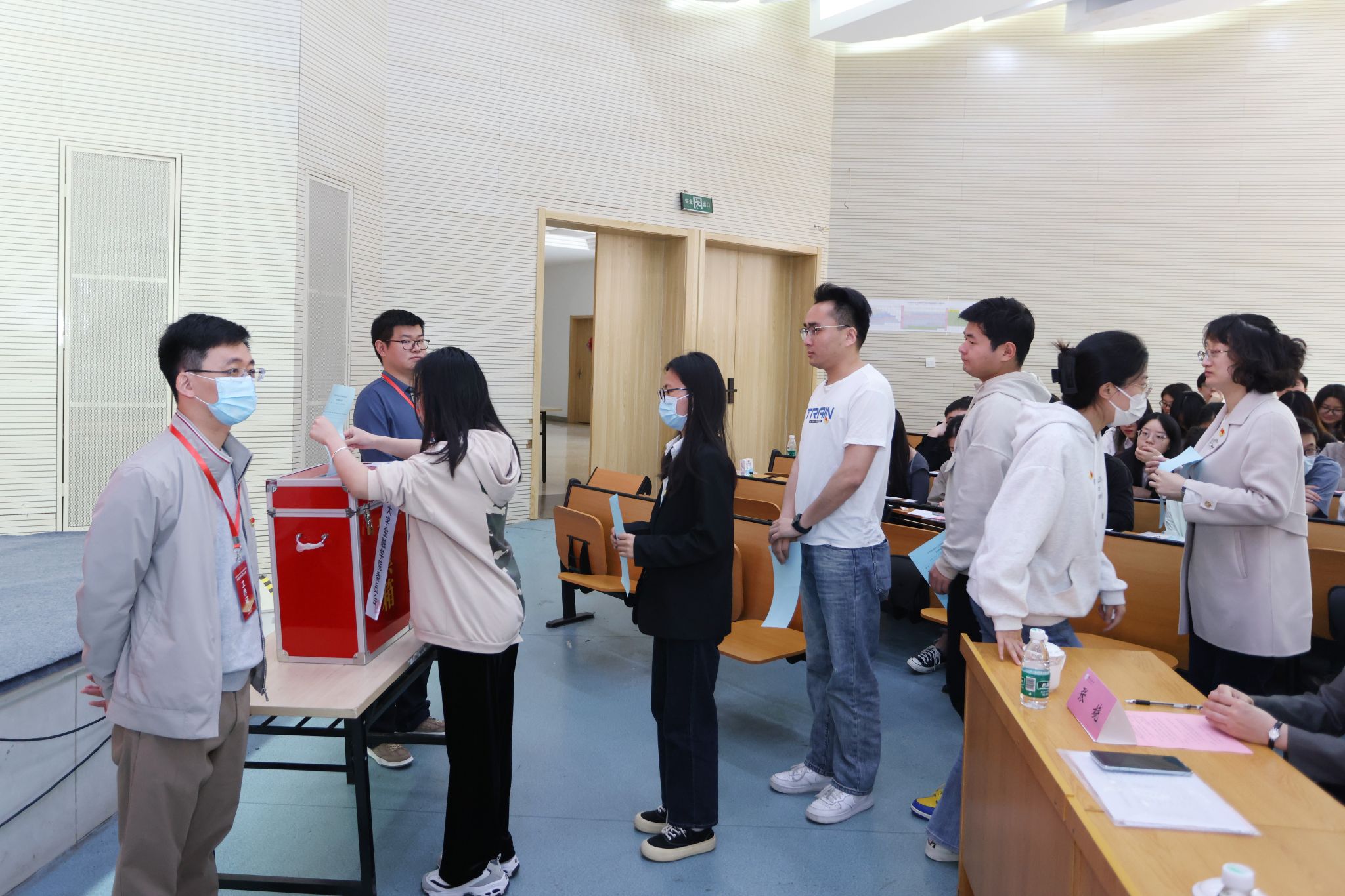朱珠代表学院党委作党费收缴、使用和管理情况报告,并通过大会审议。